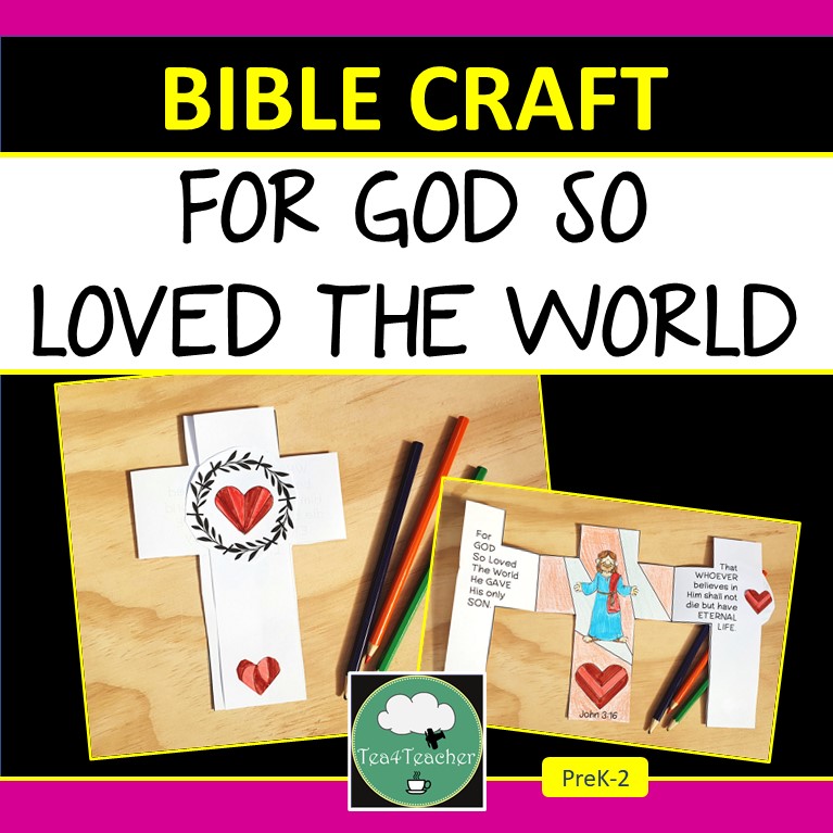 For God So Loved the World – this cute Sunday School or Christian craft is a large cross which opens out and shows the Bible verse John 3:16 in the middle. Kids can add as much or as little coloring as they like – no glue required for this one! Just some clever cutting and decoration.